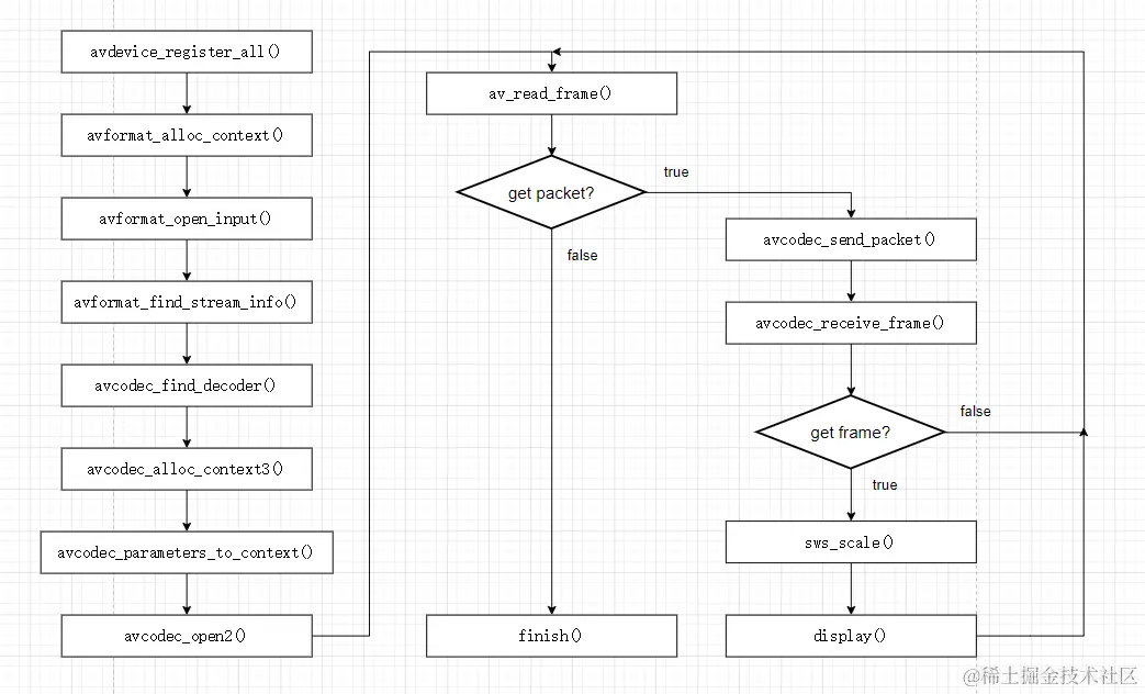 上面三个函数的意思是:初始化一个解码器上下文AVCodecContext。通过编码器的AVCodecParameters初始化解码器的AVCodecContext。初始化并打开解码器。