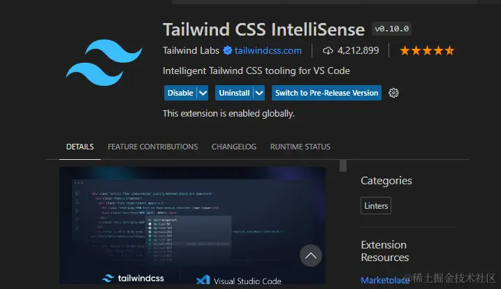 VS Code 编辑器设置,安装 Tailwind CSS IntelliSense 插件,可以获取输入智能提示
