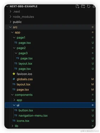 新版本的nextjs支持两种路由,原先的Pages Router,以及新增的App Router,我们工程里都使用的App Router来做示例。App Router中文件夹层级目录即为访问链接层级路径。