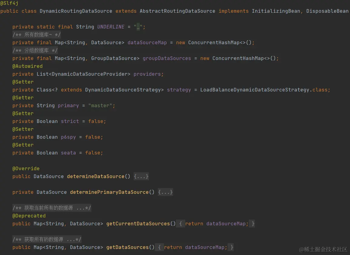底层实现核心类是com.baomidou.dynamic.datasource.DynamicRoutingDataSource,继承自AbstractDataSource