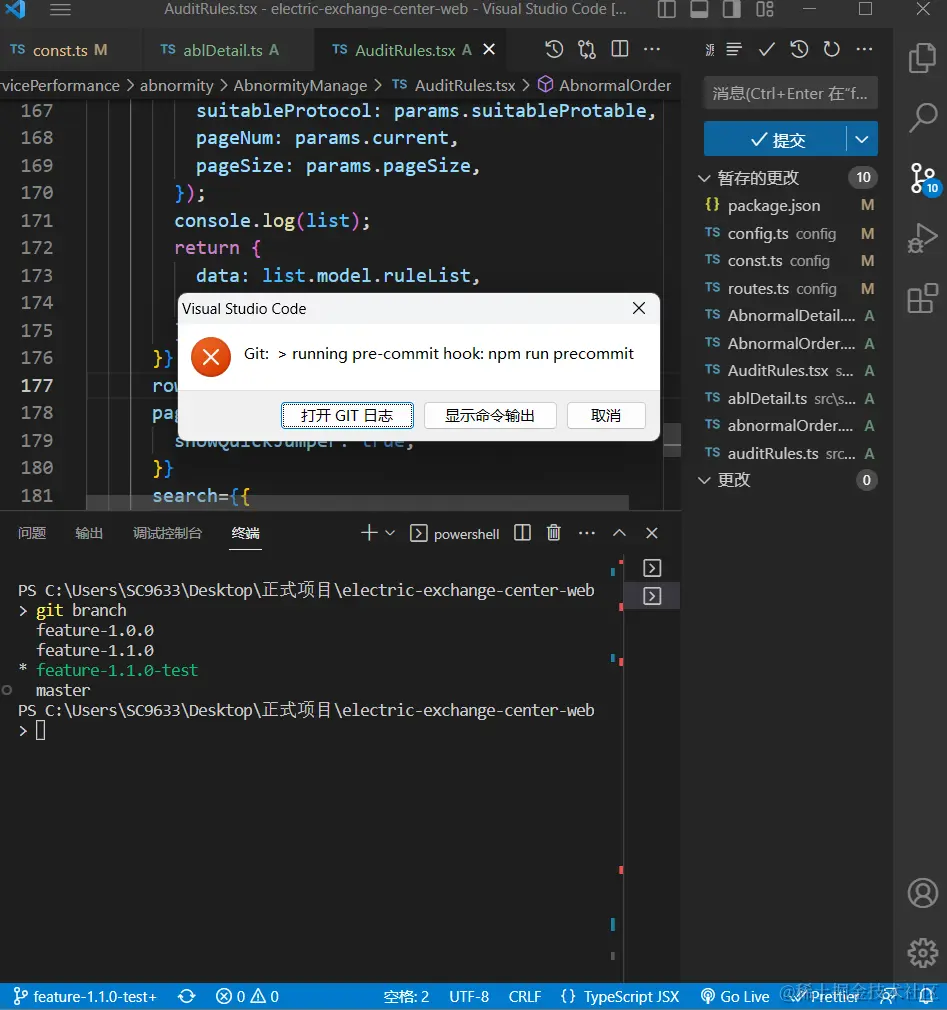- 解决方案一(不推荐):使用命令:git commit -m "xxx(自定义的修改信息)" --no-verify 提交即可解决