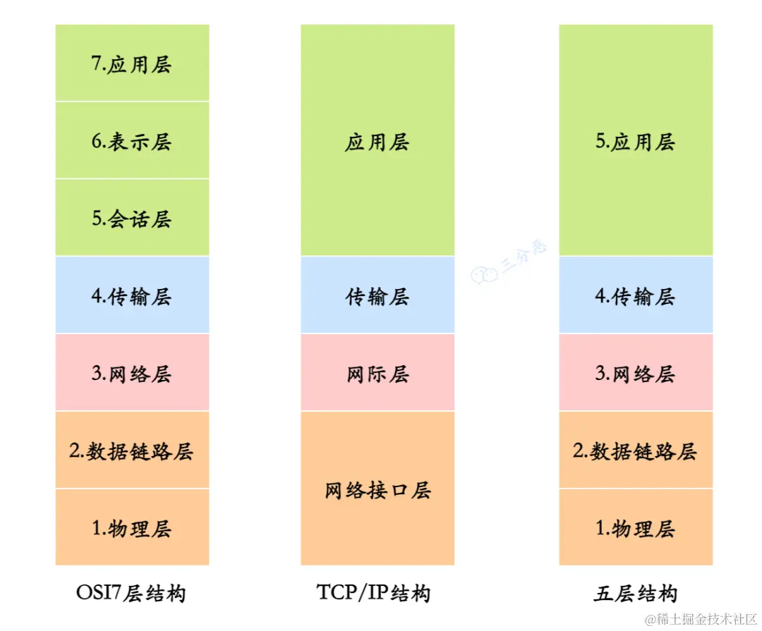 计算机网络体系结构,一般有三种:OSI 七层模型、TCP/IP 四层模型、五层结构。