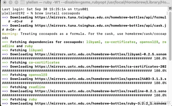 安装完成后输入brew install cocoapods