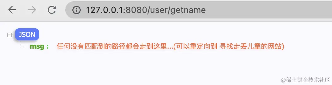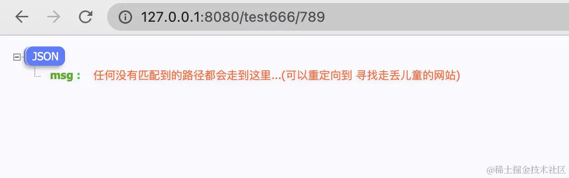 "msg": "任何没有匹配到的路径都会走到这里...(可以重定向到 寻找走丢儿童的网站)",
