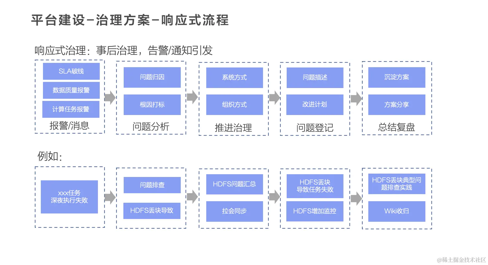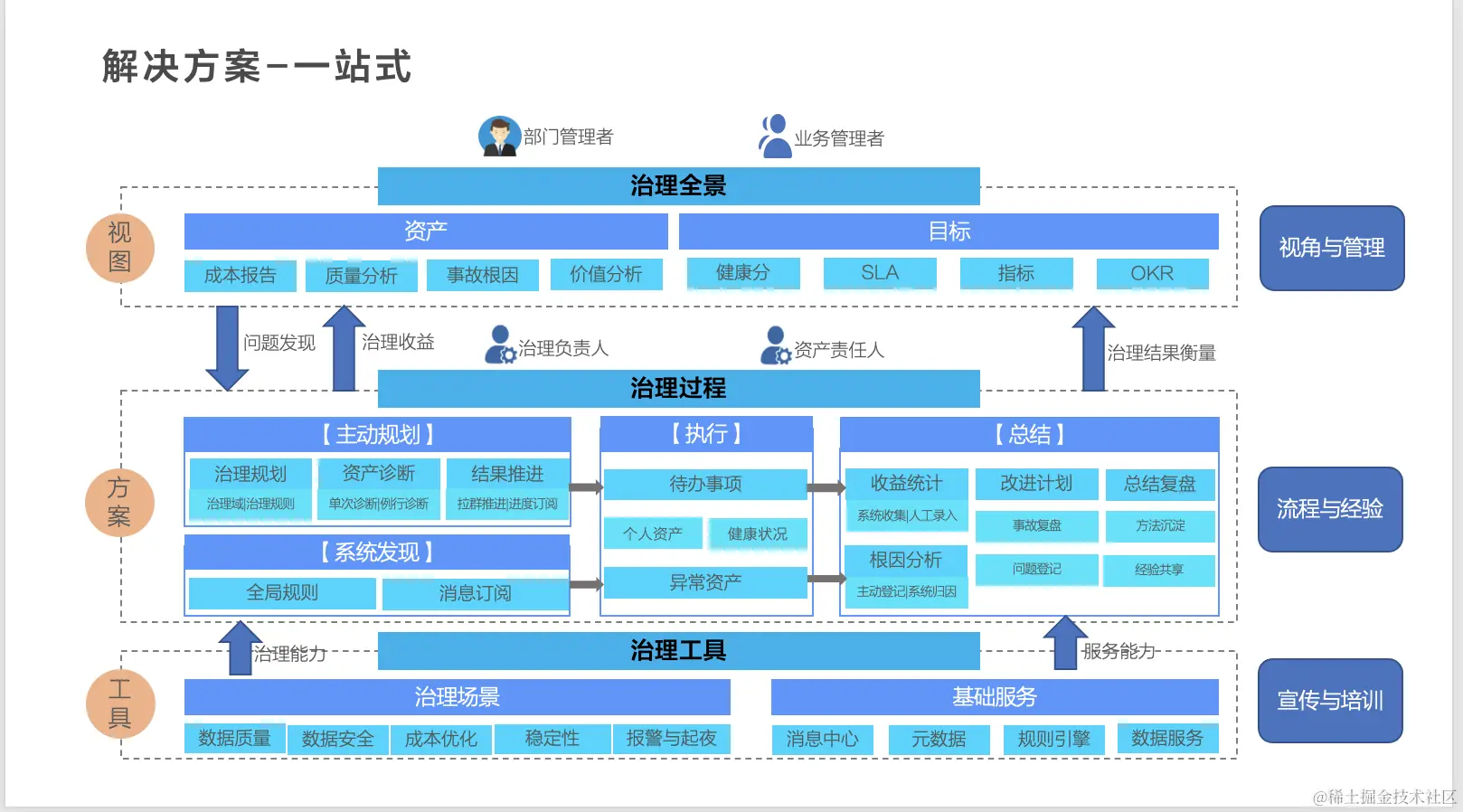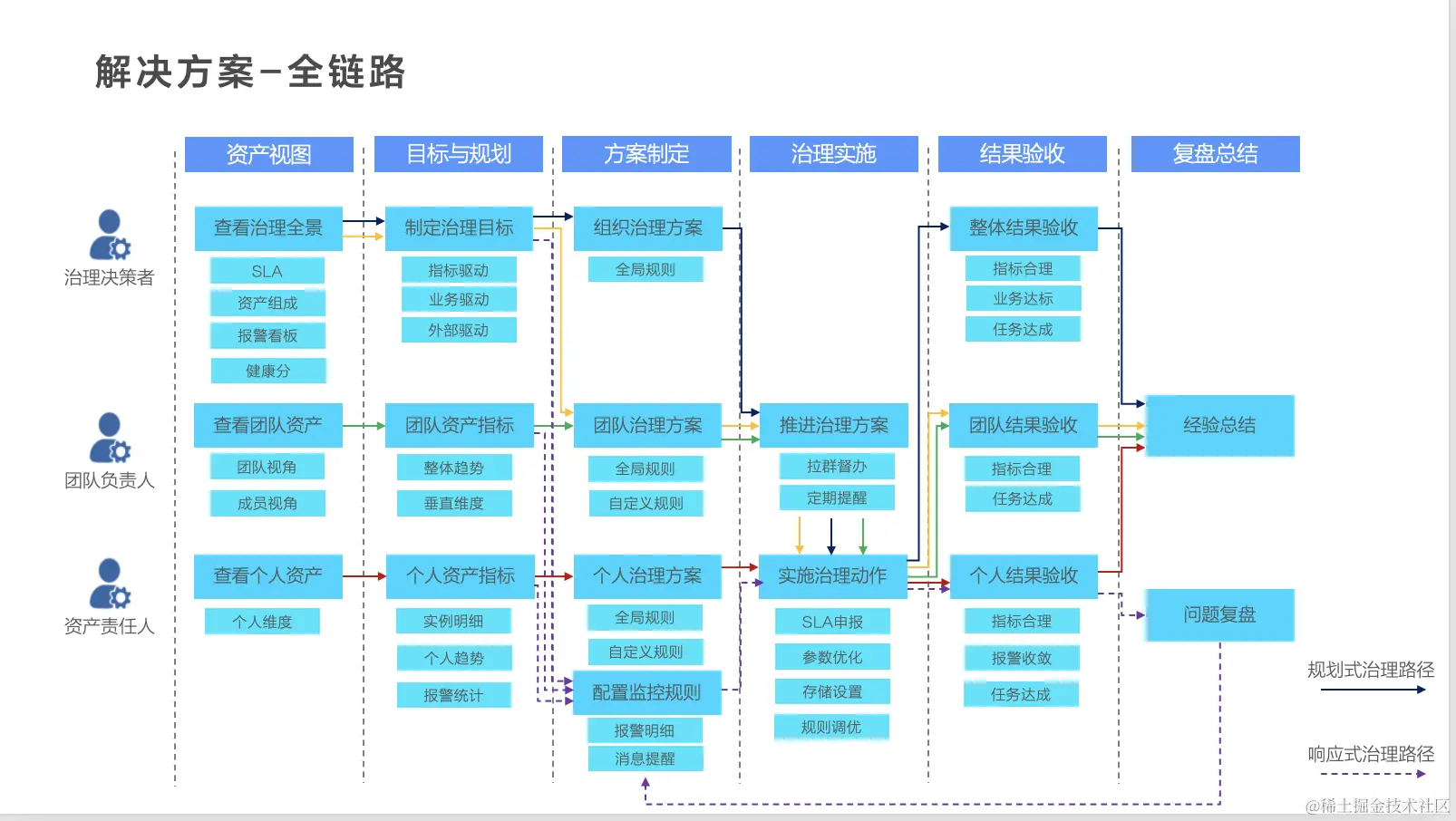 进行了一系列治理之后,我们肯定要有一个验收的环节,可能会是一个整体指标的验收,业务是否达标了,指标是否合理,最后进行一些经验的总结,这个是全链路的部分。