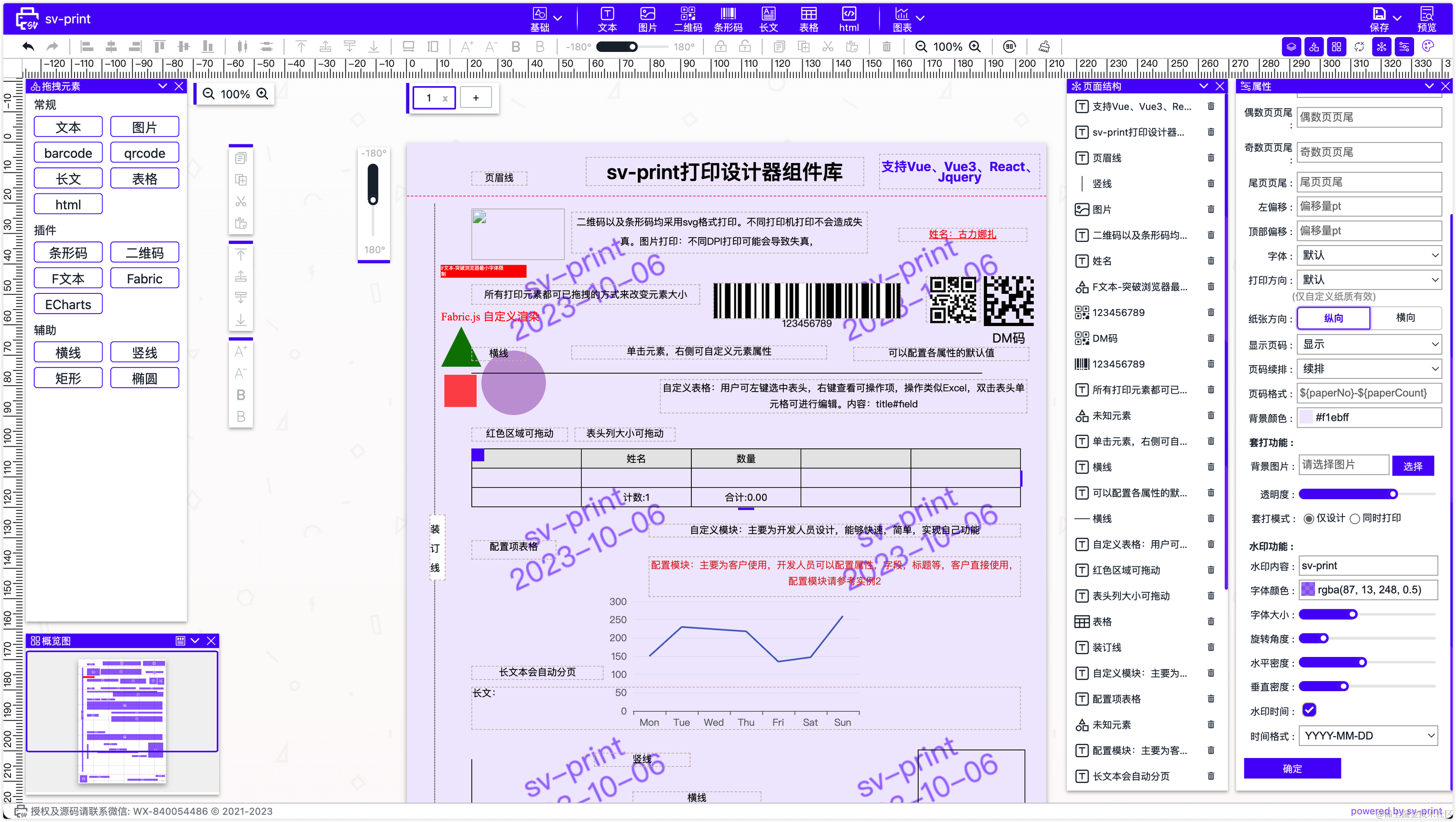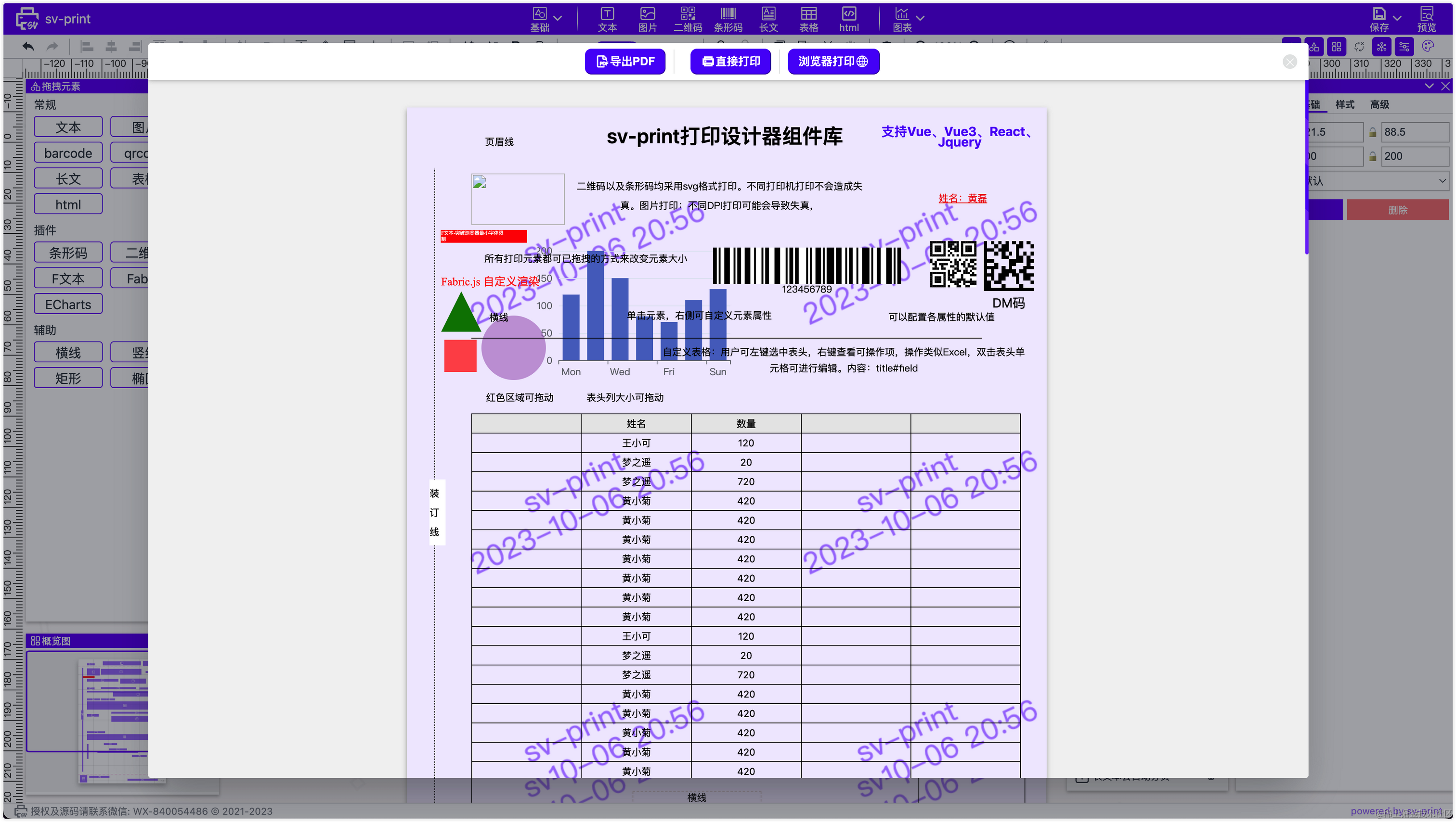 所以sv-print目前没有开源的,它相比vue-plugin-hiprint优化了更多功能,比如支持插件机制、更完善的右键菜单、图片套打等等功能; 目前我已经开发了 3 个大插件并提供了 npm 包: