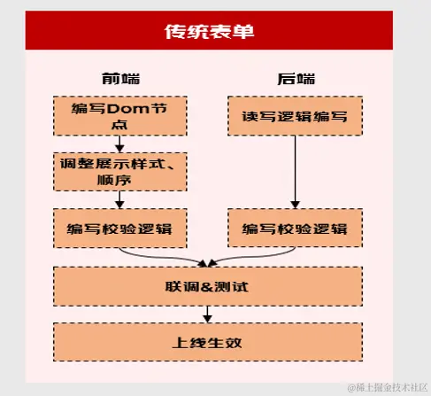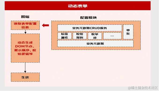区别于传统表单前后端配合联调的开发实现方式,动态表单通过一种基于元数据管理的配置化方法来实现表单的动态生成,并能根据配置自由增改删指定字段。实现特定需求的自助化。