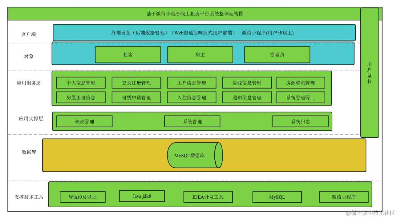 对于本线上租房平台小程序的设计来说,它主要是采用后台采用java语言、springboot框架,它是应用mysql数据库、微信小程序等技术动态编程以及数据库进行努力学习和大量实践,并运用到了微信小程序的建设中在整个系统的设计当中,具体根据网上线上租房平台小程序的现状来进行开发的,具体根据用户需求实现线上租房平台小程序网络化的管理,各类信息有序地进行存储,进入线上租房平台小程序页面之后,方可开始操作主控界面,本系统主要讲述了线上租房平台小程序开发背景,该系统它主要是对需求分析和功能需求做了介绍,并且对系统做了详细的测试和总结。具体从业务流程、数据库设计和系统结构等多方面的问题。望能利用先进的计算机技术和网络技术来改变目前的线上租房平台小程序管理状况,提高管理效率。