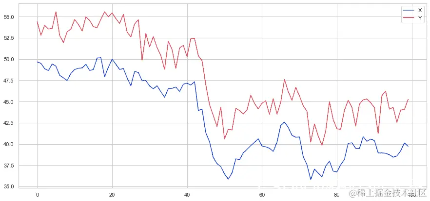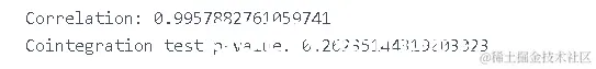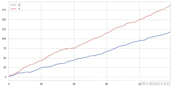正如我们所看到的,序列 X 和 Y 之间存在非常强的相关性。 然而,我们协整检验的 p 值产生了 0.7092,这意味着时间序列 X 和 Y 之间没有协整。