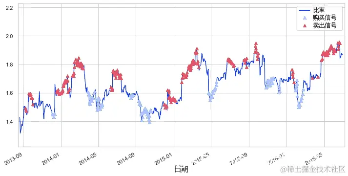 标准正态分布的均值为 0,标准差为 1。从图中可以看出,很明显,如果时间序列超出均值 1 个标准差,则趋向于恢复到均值。使用这些模型,我们可以创建以下交易信号: