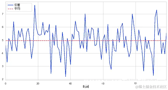 我们已经构建了两个协整序列的示例。我们现在绘制两者之间的差异。