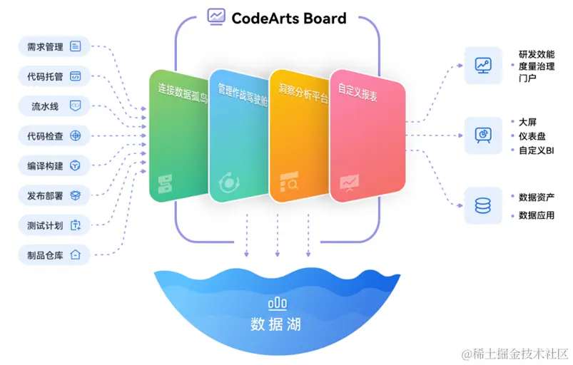 - 数据集成零感知:全面接入CodeArts工具链数据,自动汇集研发全流程数据,连接数据孤岛,贯通软件研发的全生命周期;