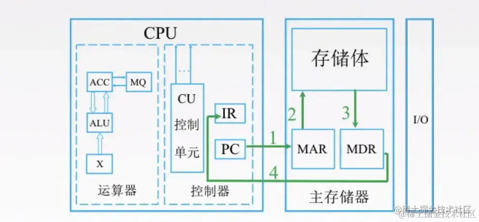 MAR去存储体内拿到指令之后,将指令地址放入MDR(存储器里专门存数据的地方) -