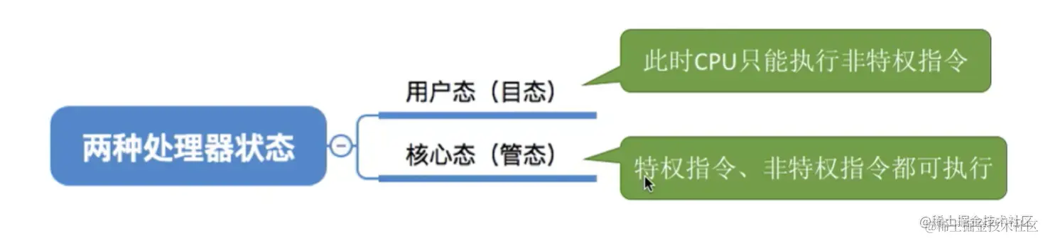 CPU通常有两种工作模式即:内核态和用户态,而在PSW(这个不用管,就知道有一个寄存器的标志位0表示用户态,1表示核心态)中有一个二进制位控制这两种模式。