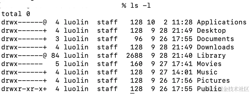 我们在命令行可以输入,ls -l命令,就可以看到目录的详细信息。如下图