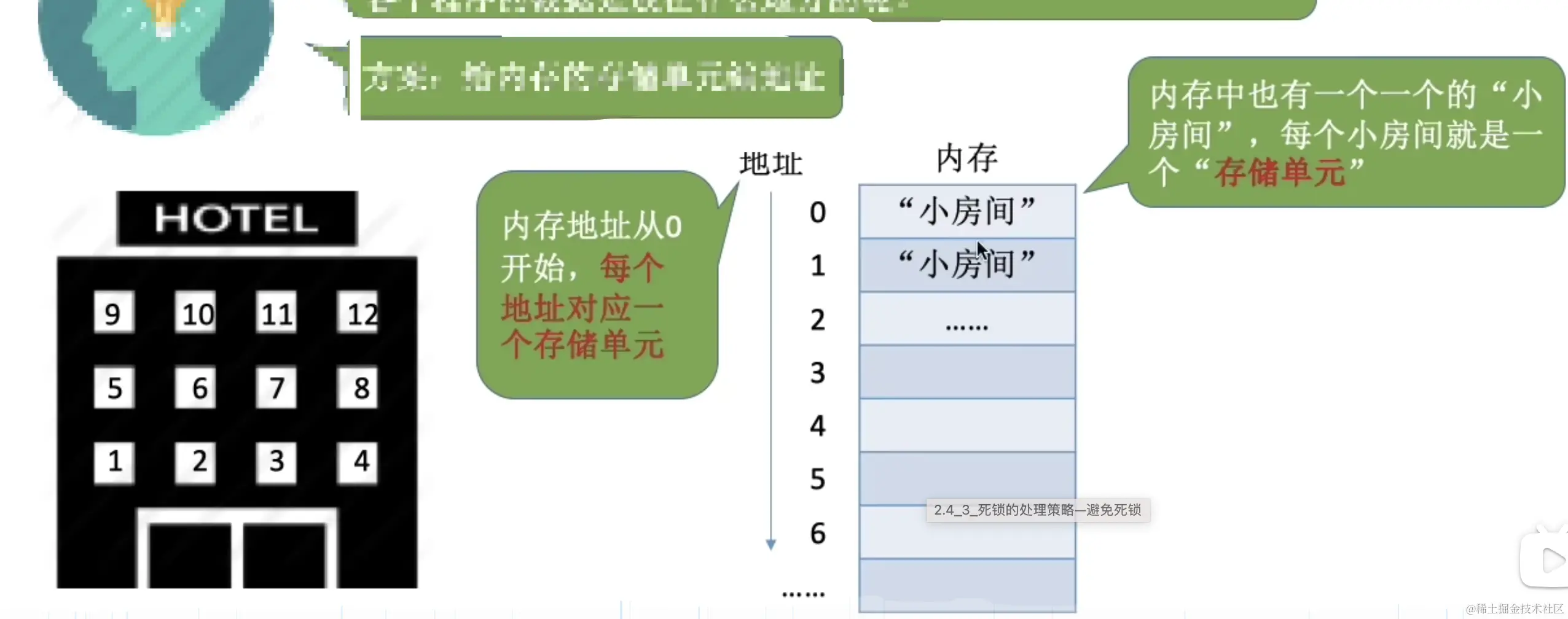 首先,我们要知道内存也是分块的,我们都知道酒店会有很多房间,房间会有很多编号,其实内存也类似,如下图