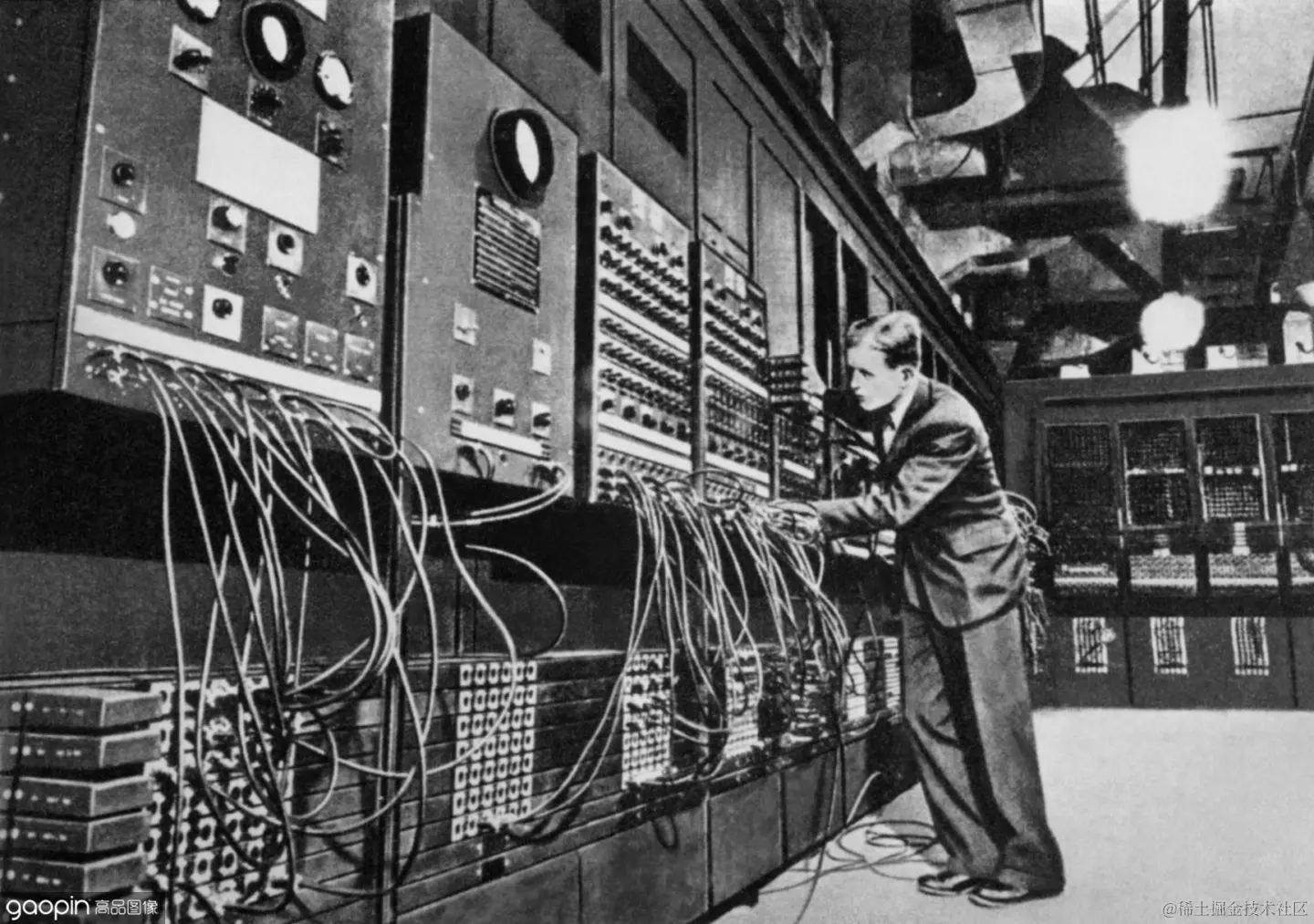 这就需要提到人类第一台计算机埃尼阿克,它也要接入I/O设备来输入数据和输出结果,但它连接的线非常多。