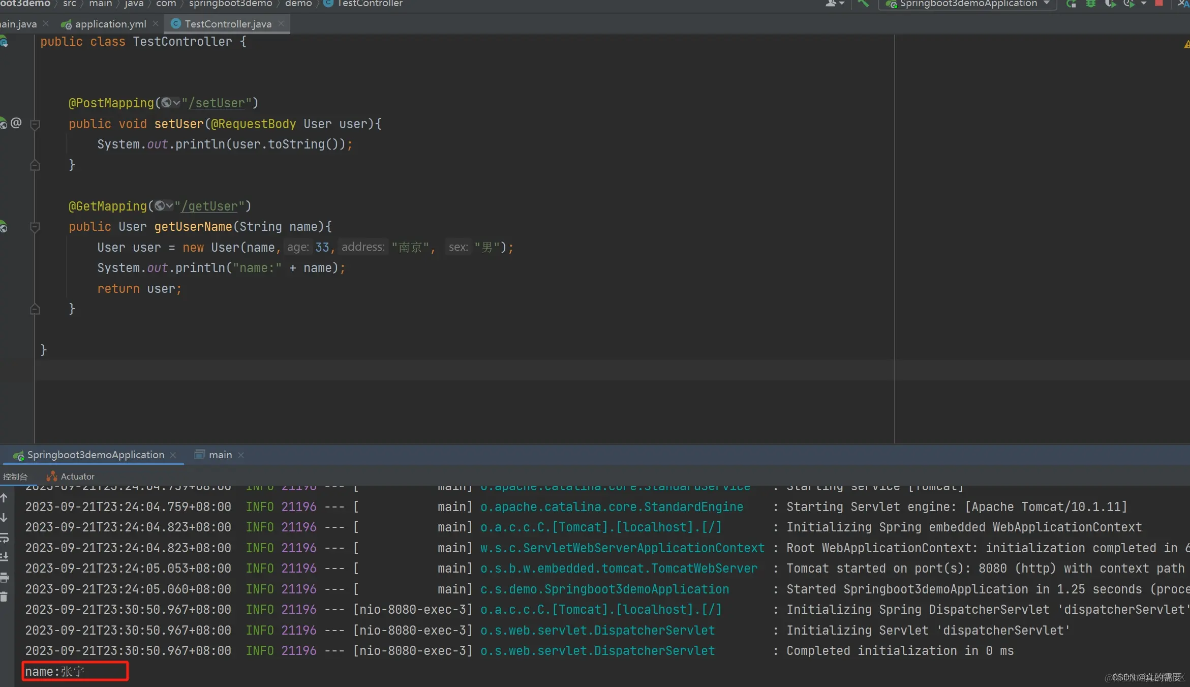 User user = new User(name,33,"南京", "男");