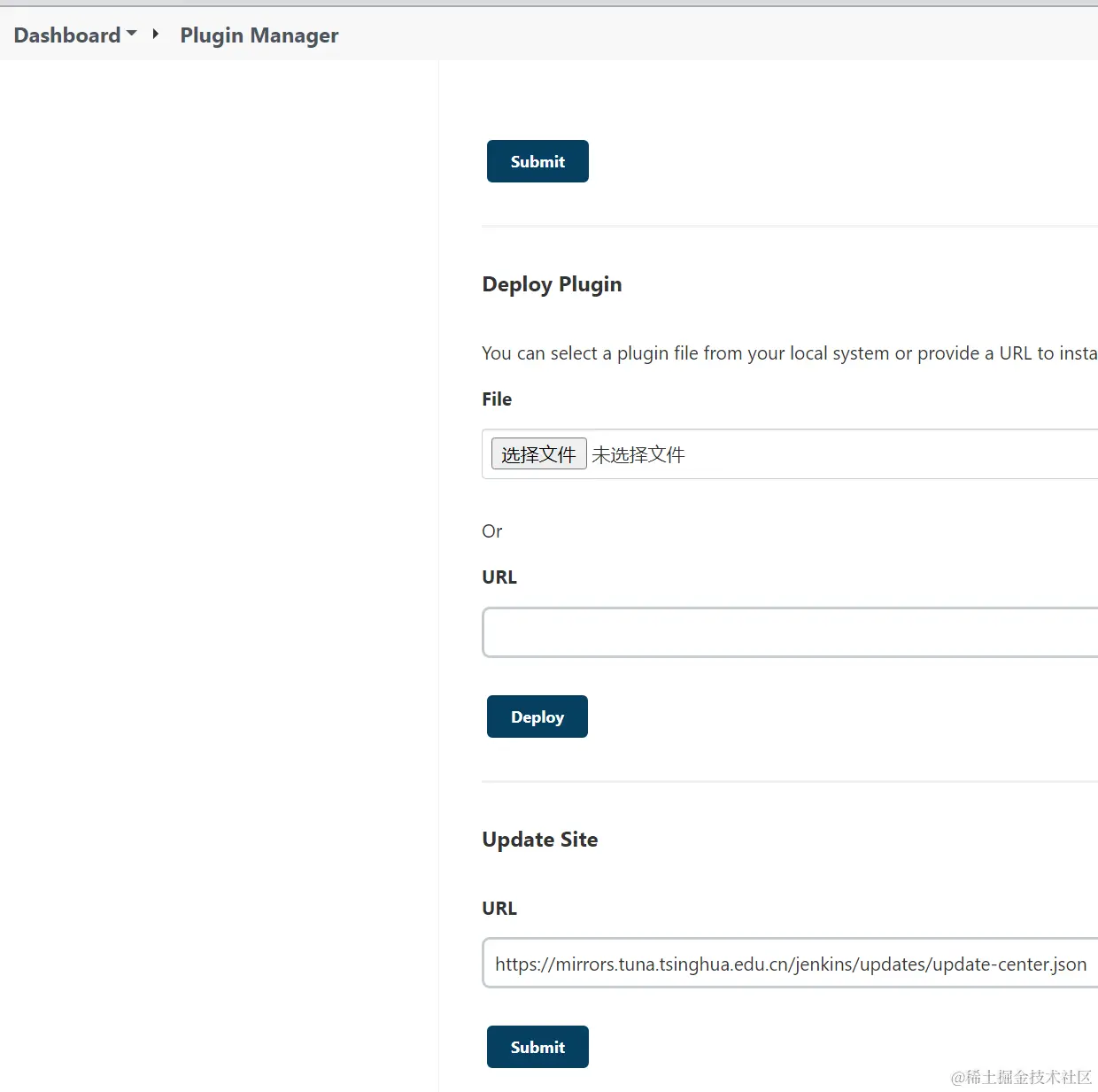 # 1. 修改 plugin manager 中update site 的url为清华镜像源https://mirrors.tuna.tsinghua.edu.cn/jenkins/updates/update-center.json