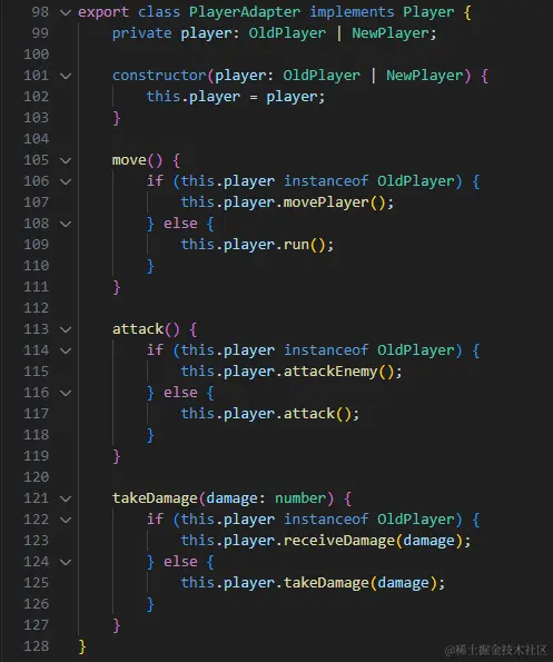 然后,我们创建适配器类 PlayerAdapter,它将不同版本的玩家角色适配到统一的接口上: