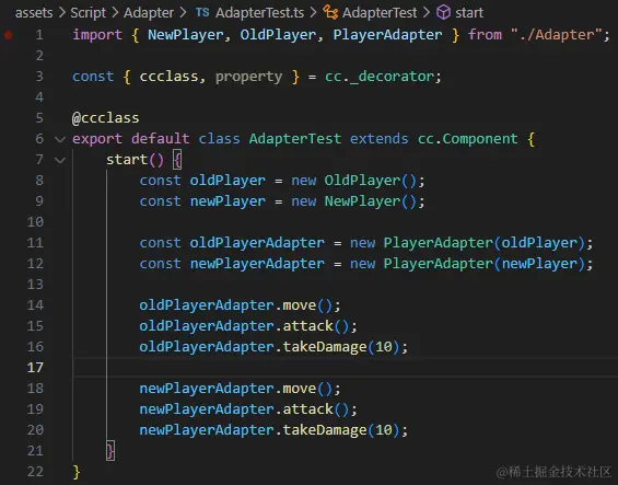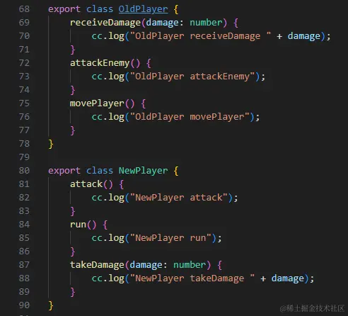 让我们通过一个简单的示例来演示如何在 Cocos Creator 中创建适配器模式。假设我们有两个不同版本的玩家角色类,分别是 OldPlayer 和 NewPlayer,它们具有不同的方法和属性。