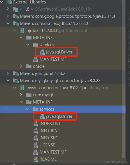 javaSPI我们最熟悉的应用就是数据库驱动了,mysql和oracle驱动针对JDBC分别有自己的实现,这就有赖于java的SPI机制。