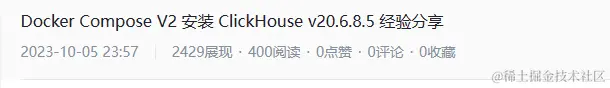 2023-10-05 产出文章:Docker Compose V2 安装 ClickHouse v20.6.8.5 经验分享