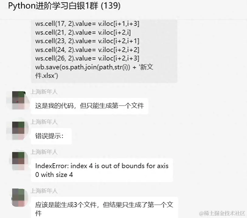 【提问补充】温馨提示,大家在群里提问的时候。可以注意下面几点:如果涉及到大文件数据,可以数据脱敏后,发点demo数据来(小文件的意思),然后贴点代码(可以复制的那种),记得发报错截图(截全)。代码不多的话,直接发代码文字即可,代码超过50行这样的话,发个.py文件就行。