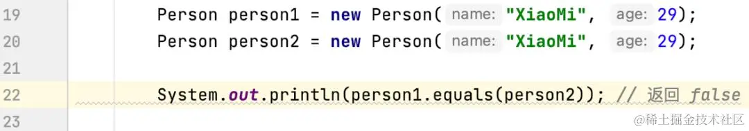 在这个示例中,尽管 person1 和 person2 的内容相同,但它们是不同的对象,因此 equals 方法返回 false。这显然不是我们想要的行为。