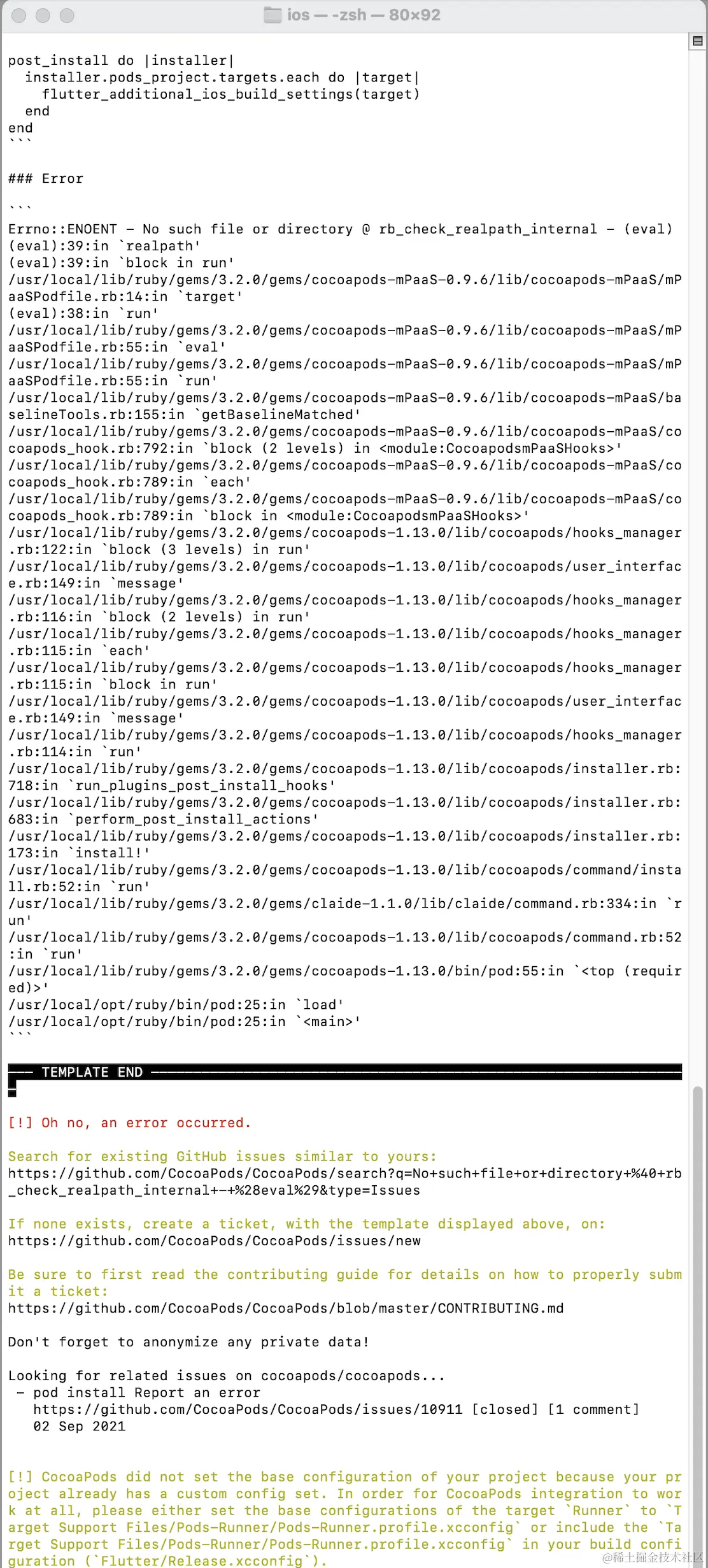 控制台给搜的Cocoapods的issues,但是这个没啥有用的内容。自己搜的issue话,Cocoapods官方的意思是这是Flutter的问题,去找Flutter提issues。