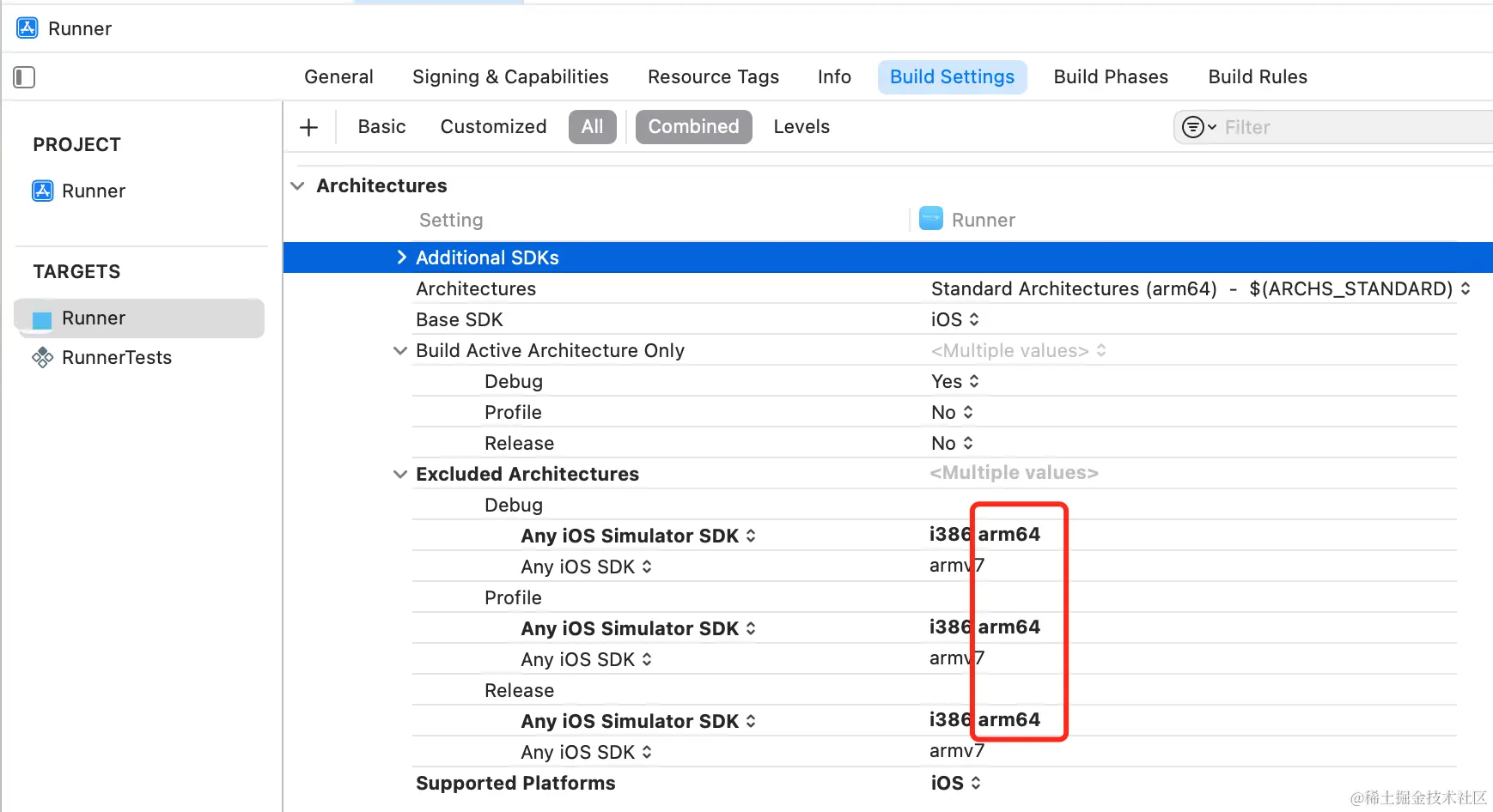 集成mPaaS后,iOS在M1芯片的mac上会变成只能真机运行(intel芯片没试),这里只需要修改下Xcode配置,增加arm64