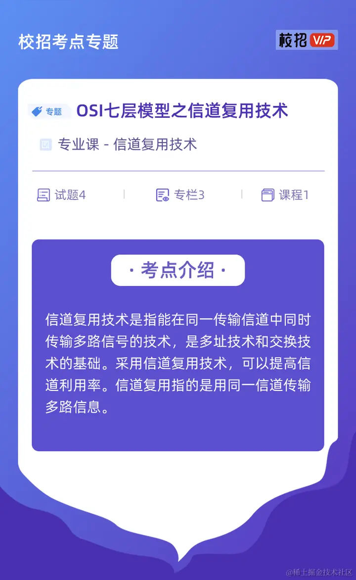 本期分享的OSI七层模型之信道复用技术,分为试题、文章以及视频三部分。