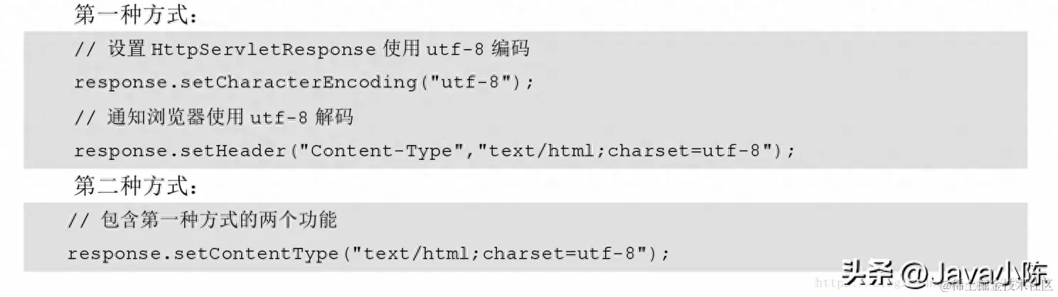 response.setContentType("text/html;charset=UTF-8")这个方法包含了上面的两个方法的调用,因此在实际的开发中,只需要调用一个response.setContentType("text/html;charset=UTF-8")方法即可。