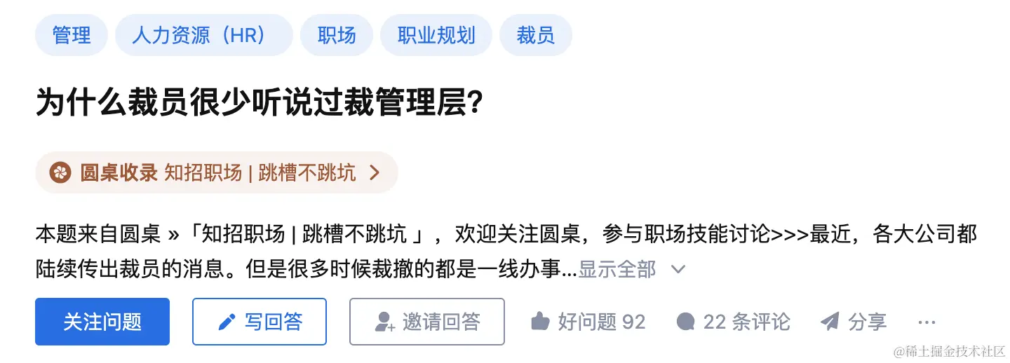 可能是因为我发过裁员相关的内容,知乎给我推了这个问答: