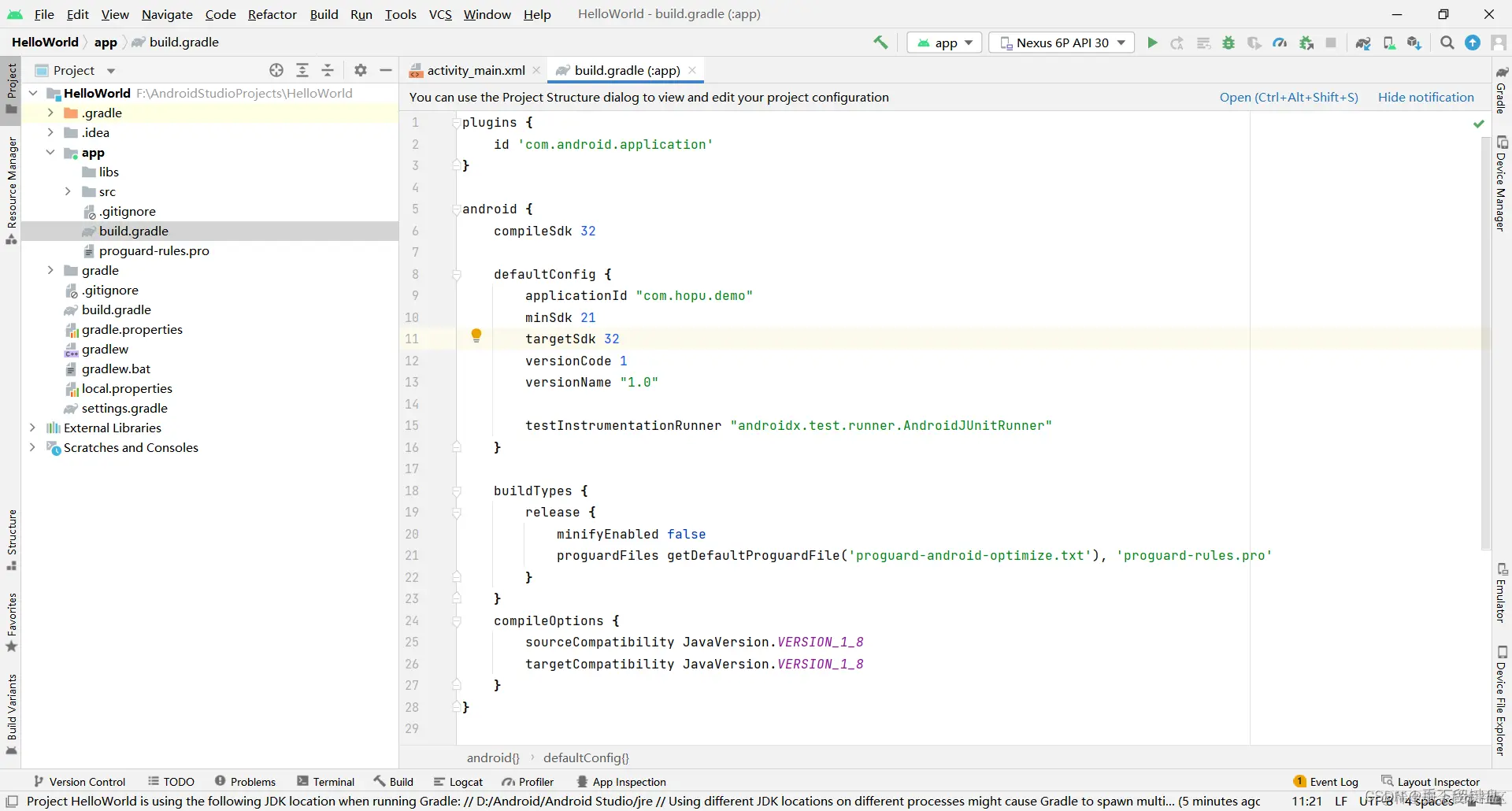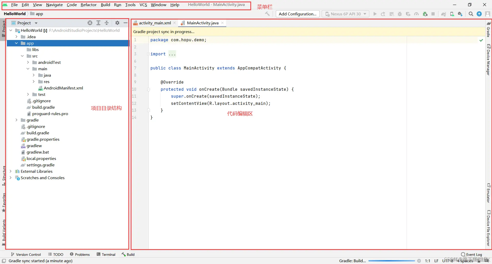5 运行项目 6 工程创建与目录结构6.1 AS工程目录结构6.2 AS工程目录结构详解└─ASProjectTree ├─.gradle 自动编译工具产生的文件 ├─.idea 开发工具产生的文件 ├─app module模块,应用相关的东西在里边 ├─gradle gradle环境支持文件夹 ├─.gitignore Git源码版本管理忽略管理文件 ├─build.gradle gradle项目自动编译的配置文件 ├─gradle.properties ├─gradlew 自动完成 gradle 环境的linux mac 脚本,配合gradle 文件夹使用 ├─gradlew.bat 自动完成 gradle 环境的windows 脚本,配合gradle 文件夹使用 ├─local.properties Android SDK NDK 环境路径配置 └─settings.gradle gradle 项目的子项目管理文件