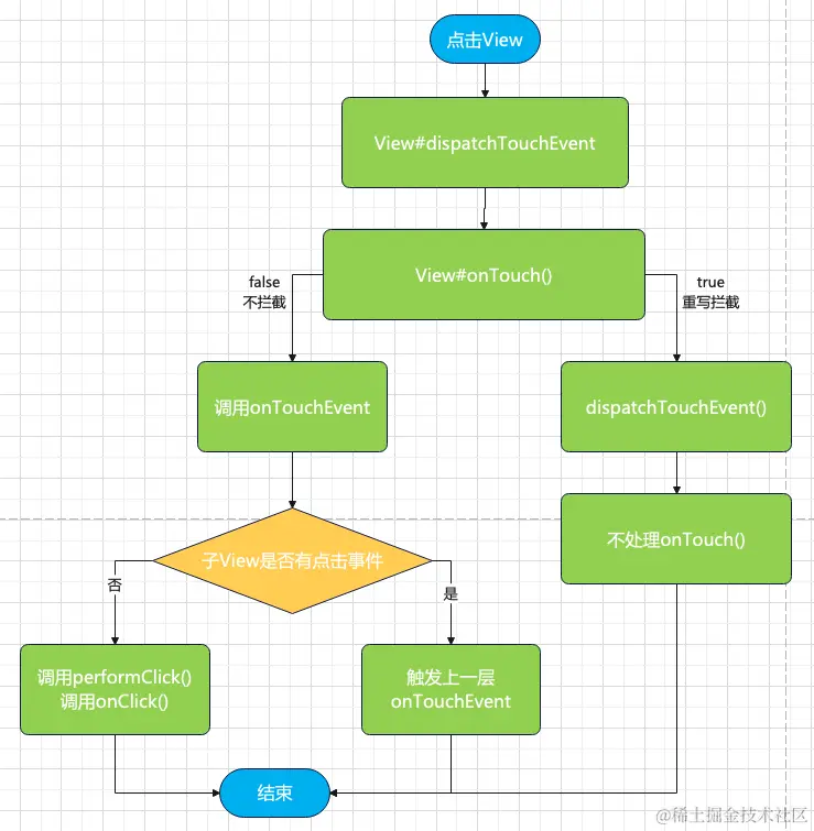 - 子View会调用自己的onTouchEvent方法来处理触摸事件。