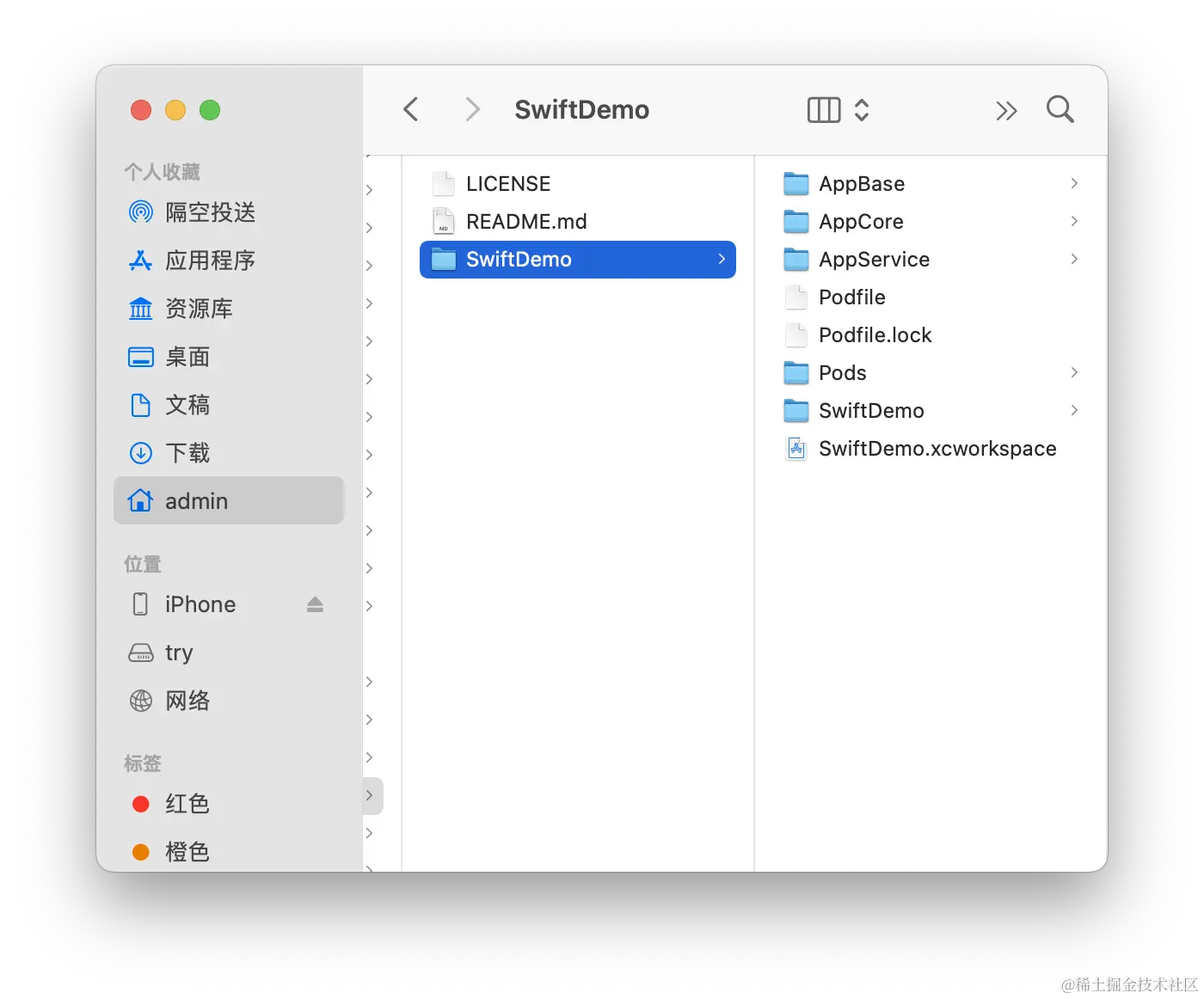 - 使用Finder找到并双击Workspace文件,用Xcode打开它