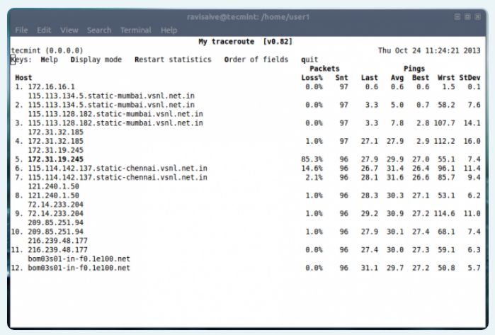 $ sudo apt-get install mtr (On Debian based Systems)