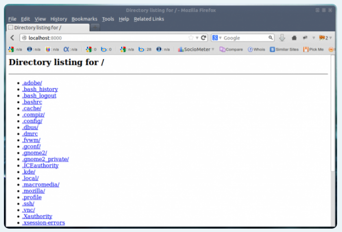 下面的命令通过 HTTP 为目录结构树生成一个简单的网页,并且可以在浏览器的端口 8000 上访问,直到发送中断信号。