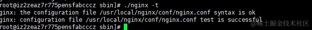 ./nginx -t # 这个命令是为了测试配置文件是否正确 如果没问题 执行如下命令,启动nginx