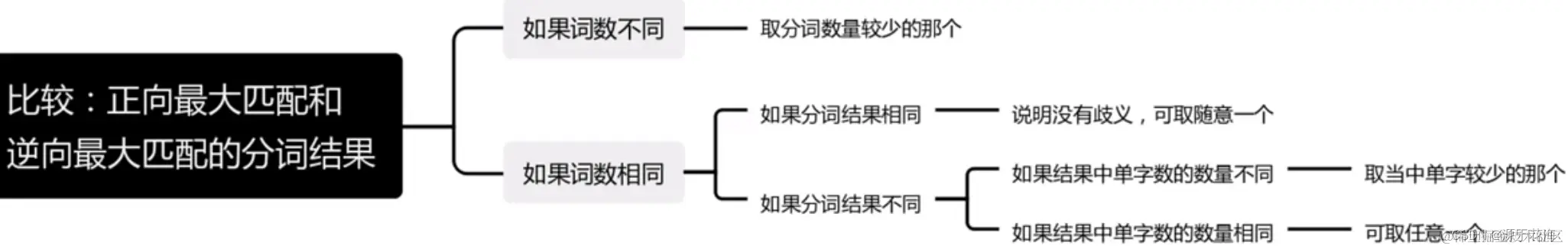 (2)如果分词结果词数相同:分词结果相同,就说明没有歧义,可返回任意一个。分词结果不同,返回其中单字较少的那个。
