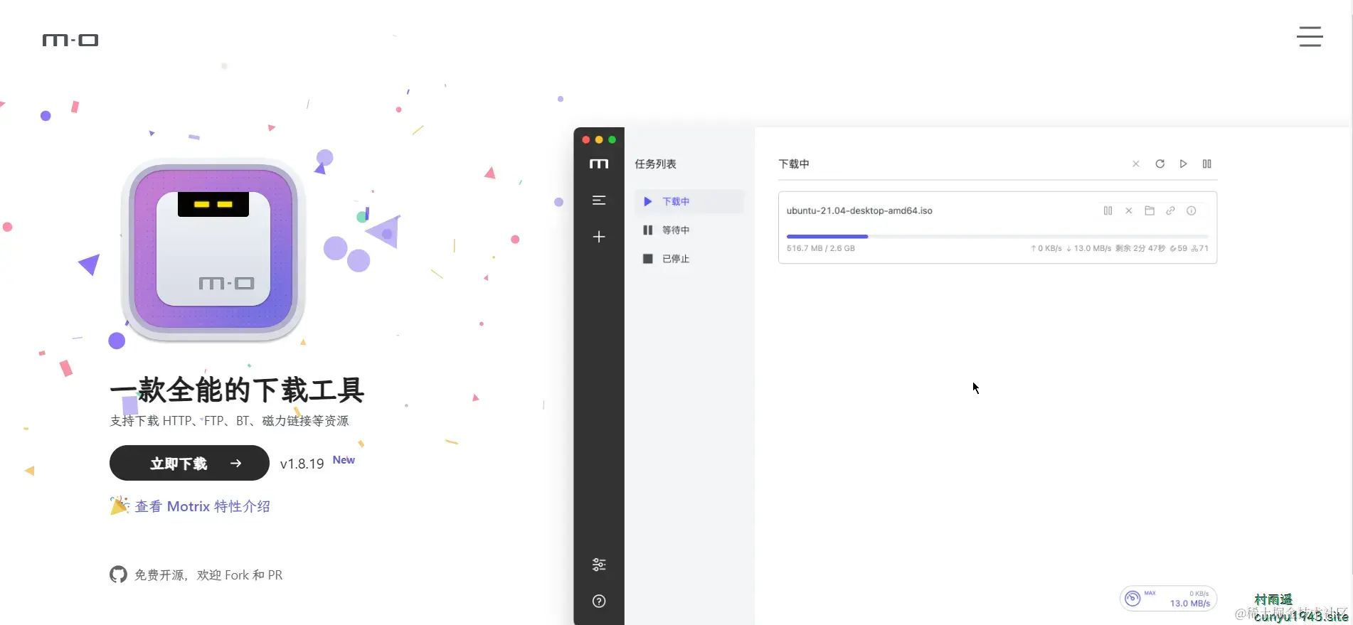 一款全能的下载工具,支持下载 HTTP、FTP、BT、磁力链接等资源。最最重要的是,他完全跨平台且免费。