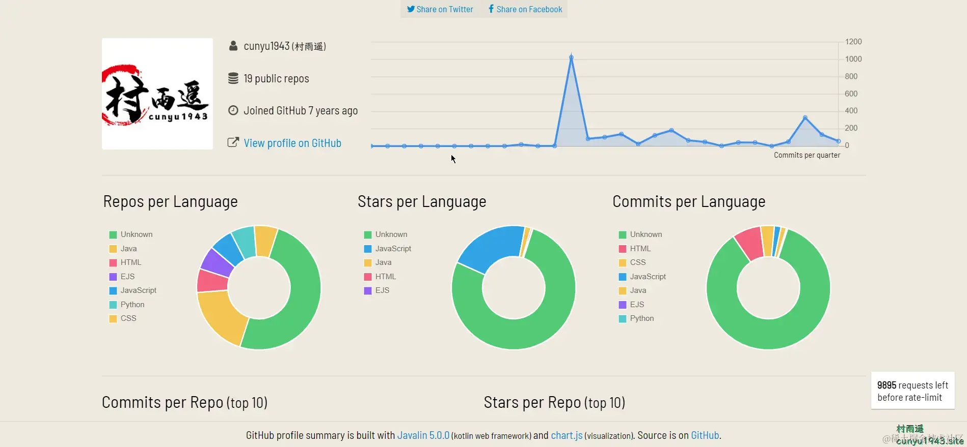一个统计 Github Profile 的可视化工具。