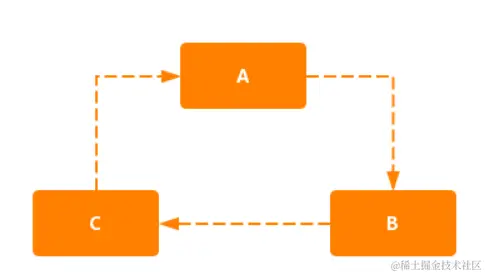 循环依赖其实就是循环引用,也就是两个或则两个以上的bean互相持有对方,最终形成闭环。比如A依赖于B,B依赖于C,C又依赖于A。如下图所示: