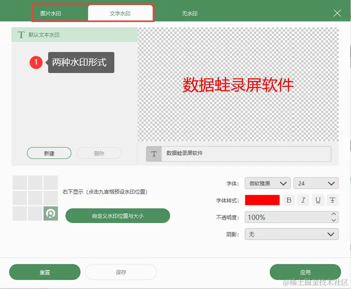 第3步:如果您希望录制的视频带有自己的水印,可以提前进入到设置水印页面,软件支持文字水印和图片水印,根据自己的需求进行选择。
