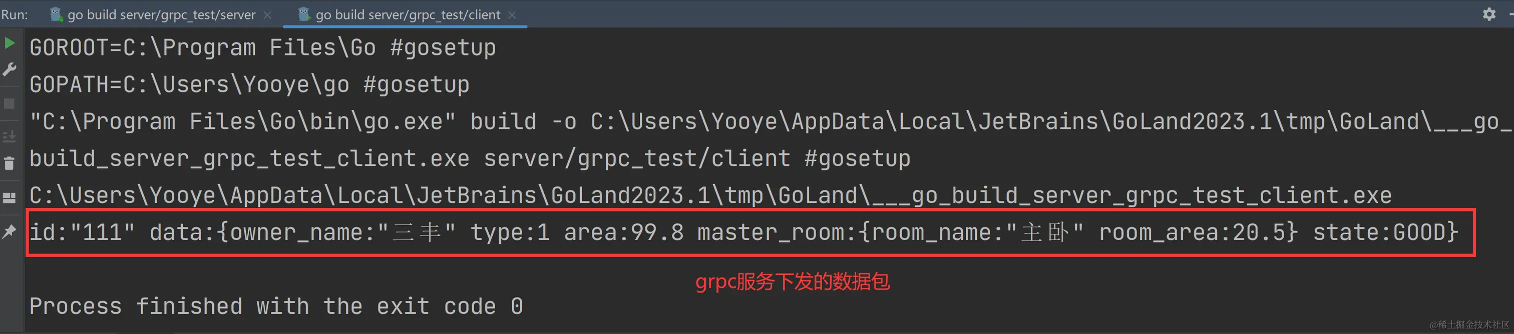 运行client/house.go中的main,可以在终端查看到如下结果: