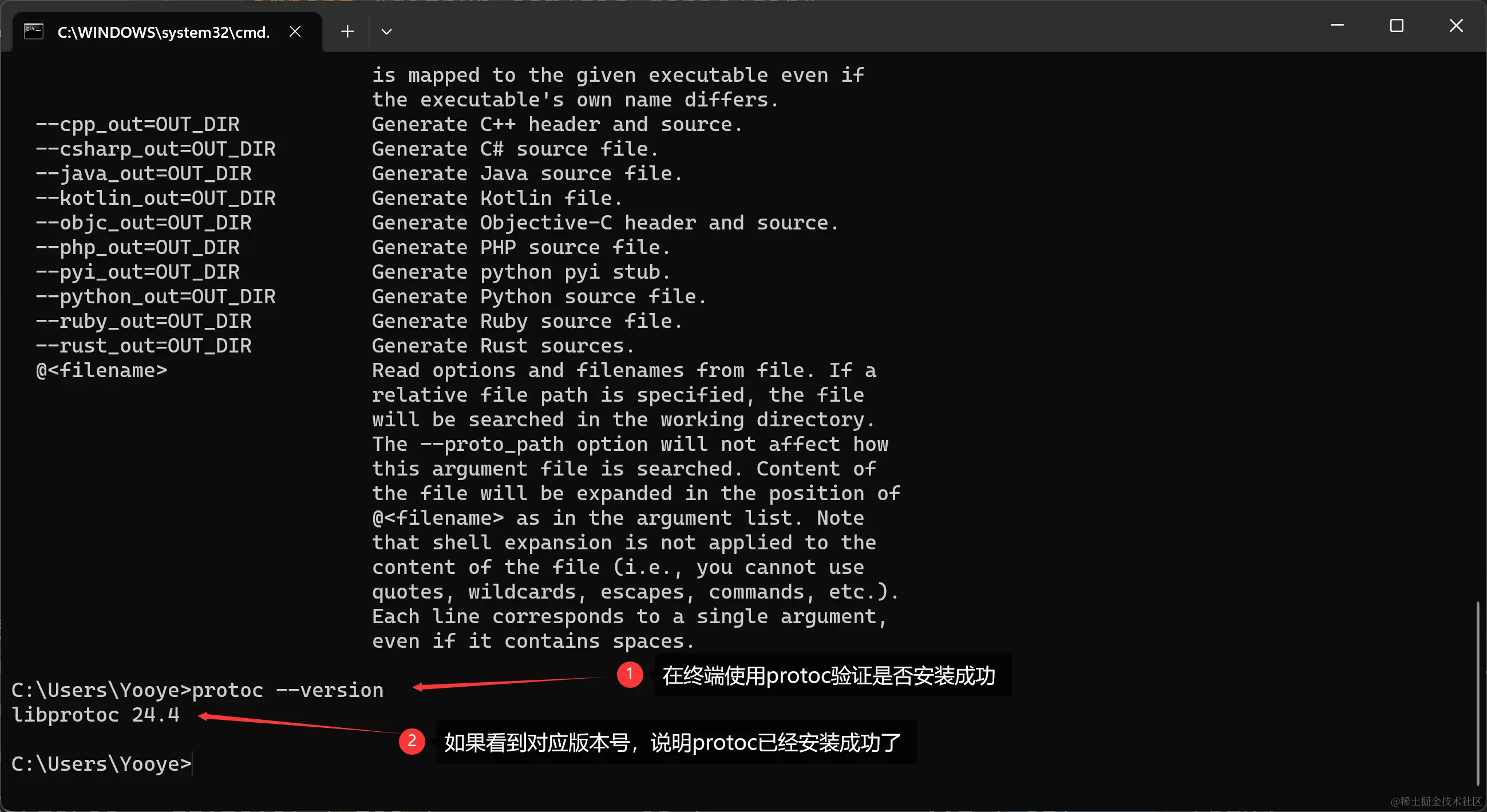 - 终端查看protoc的版本