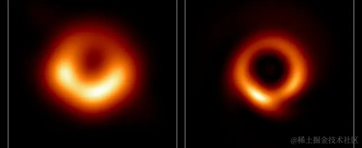 图 11:原始黑洞照片(左)和处理后的黑洞照片(右)