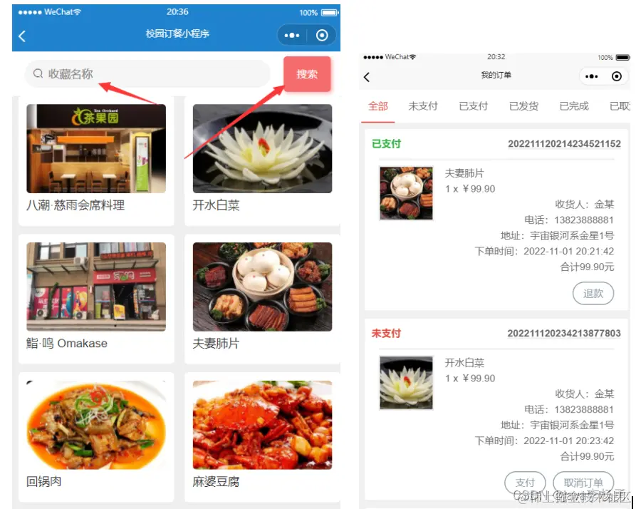 本章主要介绍校园订餐小程序的系统实现,根据系统的需求分析,系统设计,系统前台功能区和系统后台功能区的实现。通过以下系统运行界面和核心代码展示。