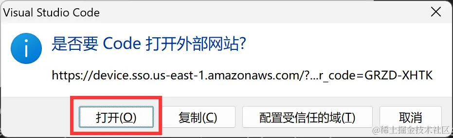 是否允许,翻译成【允许AWS VSCode工具包访问您的数据吗?】这里我们需要点击【Allow】代表允许。